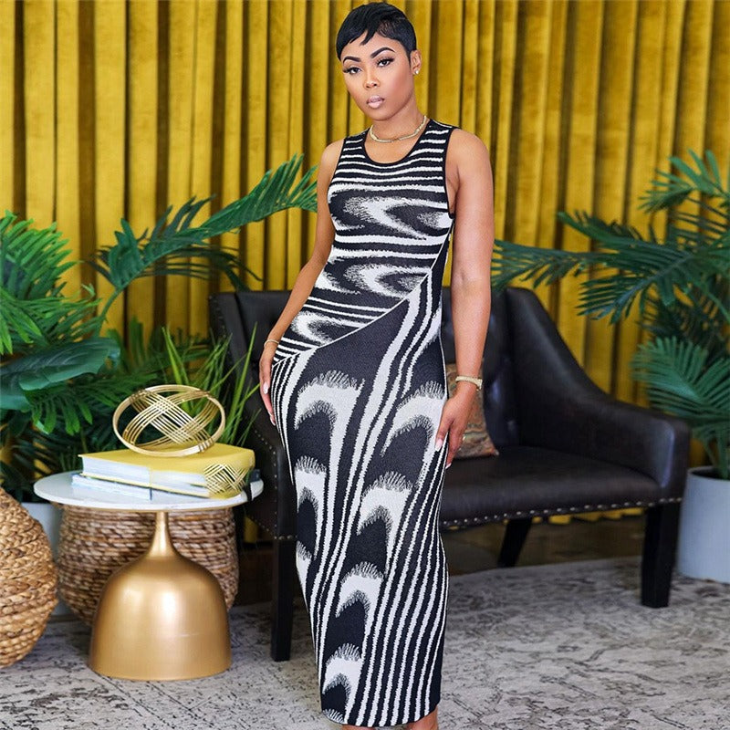 Vestido ajustado con cuello redondo, estampado de olas, nuevo y moderno, para mujer de Europa y América