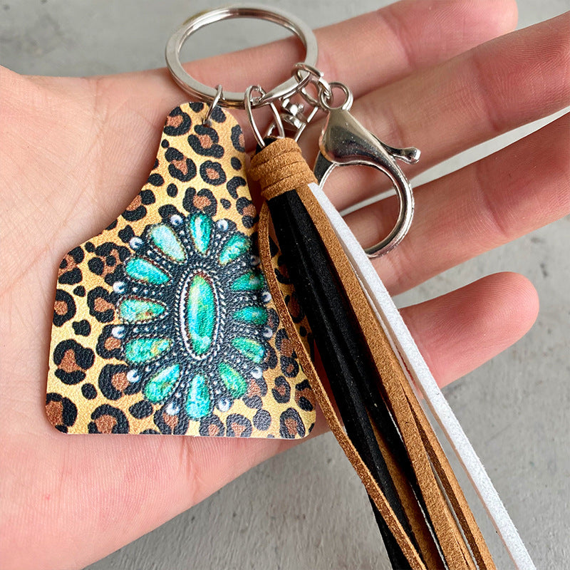 Dispositivo de prevención de pérdidas de vaquero occidental Llavero de cuero de marca Aztec Bullhead con borla de cuero Colgante popular