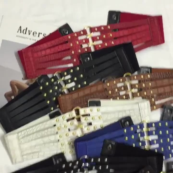 Hollow out Punk Personality Rivet Waist Cover Super Wide Women's Belt Decorative Dress Elastic Waist Cover