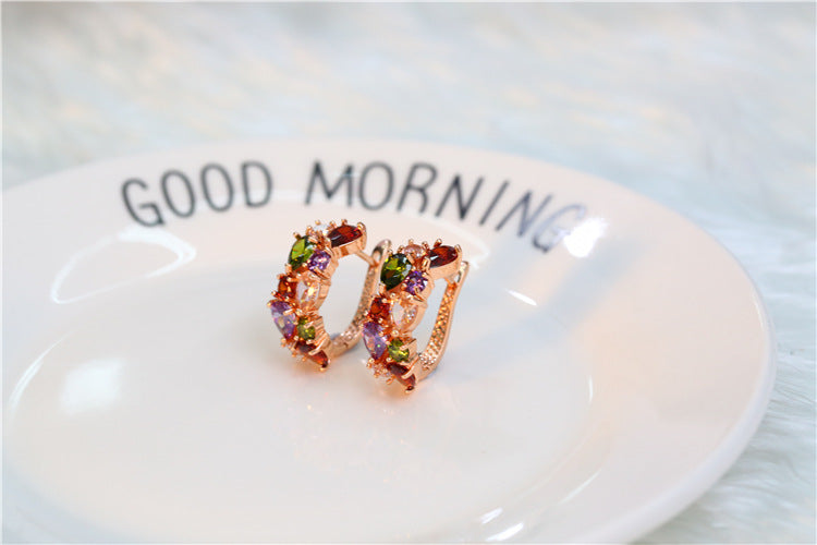 Jewelry Boutique Set Mona Lisa Zircon Necklace Earrings Colorful Necklace Earrings Two Piece Set