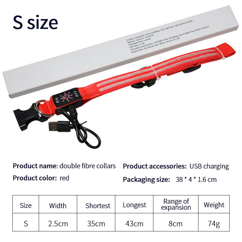 LED Light-Emitting Collar With Dual Fiber Optic Glow-In-The-Dark Collar Pet Built-In Rechargeable Battery With USB Cable