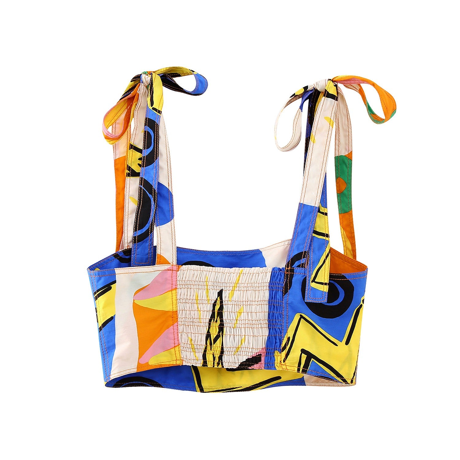 New European and American Style Printed Drawstring Top With Wide Swing Skirt