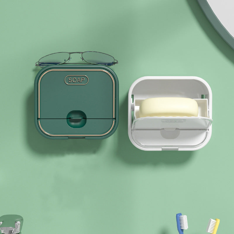 Non Perforated Wall Mounted Soap Storage Rack With Double Layer Drainage Flip Cover For Toilet Storage Household Soap Box