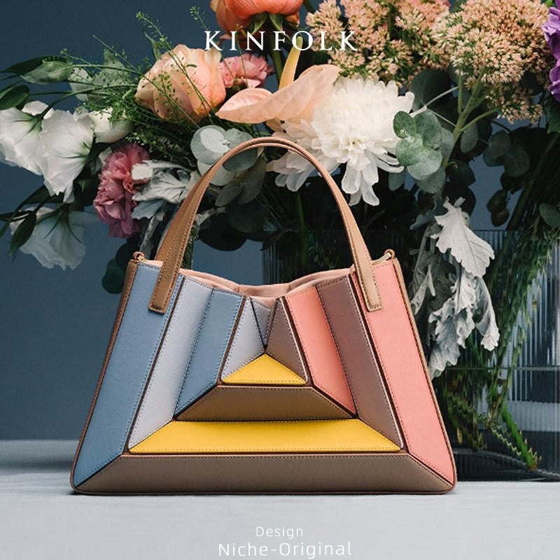 Pleated contrasting color fashionable mini handbag crossbody bag