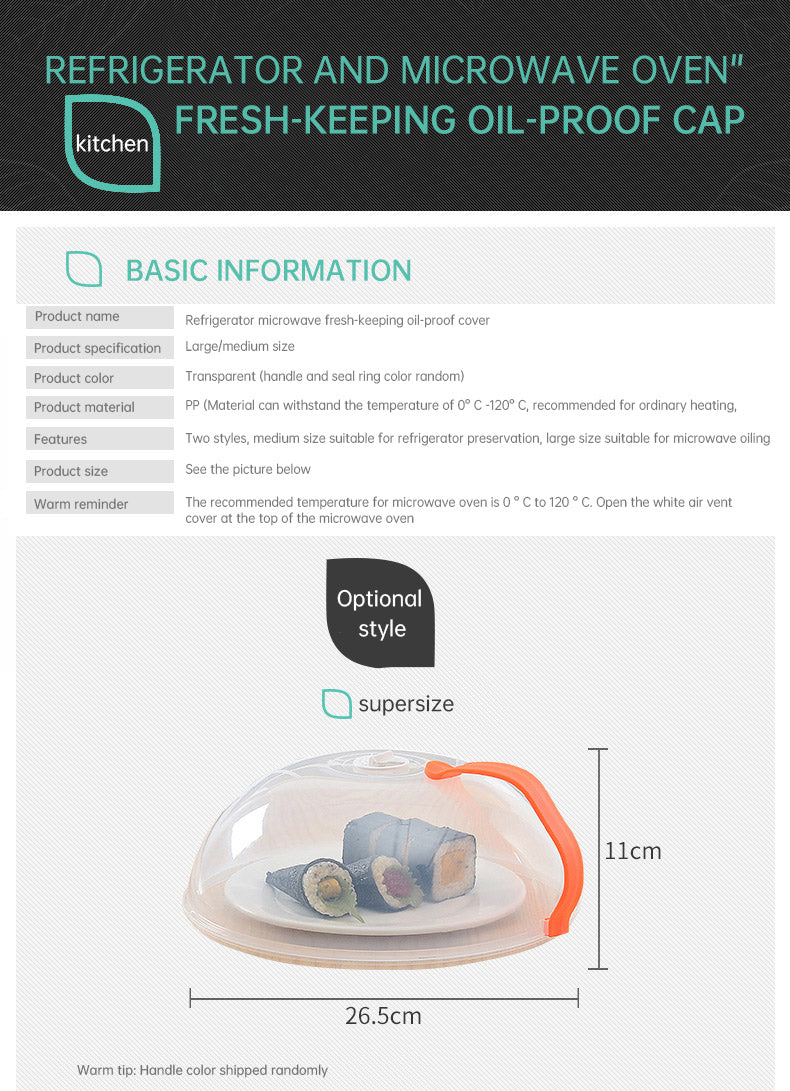 4. The length, width, and height of the microwave cover separately are 26.5cm, 26.5cm and 11cm.