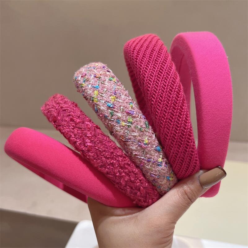 Rose Pink Large Collection High-Class Hair Hoop Korean Version Small Fragrant Geometric Letters Sponge High Skull Top Hair Hoop