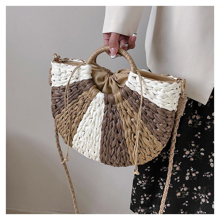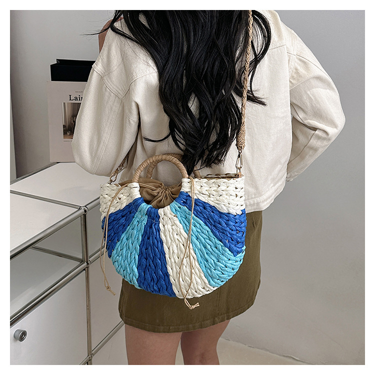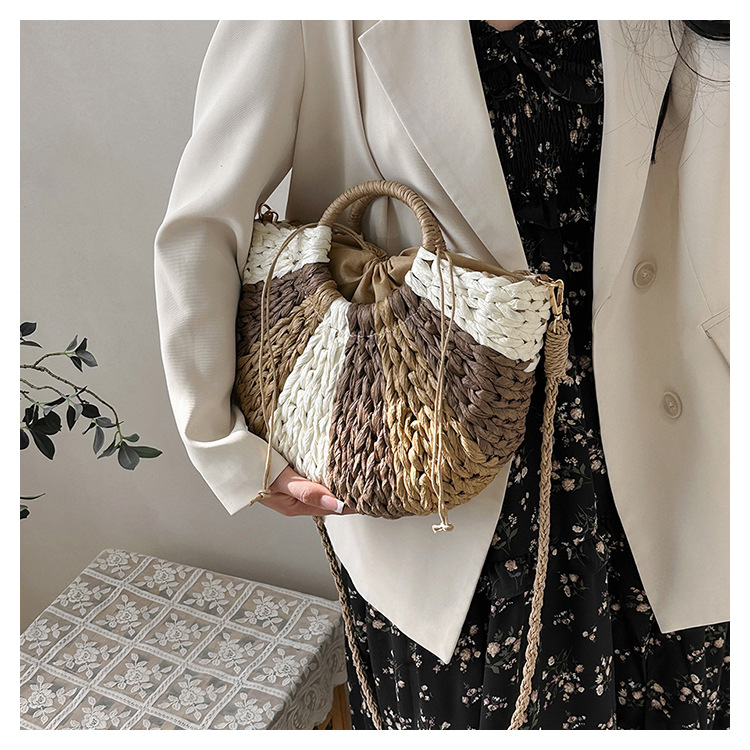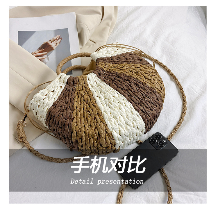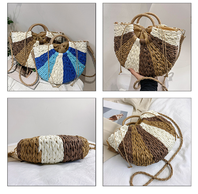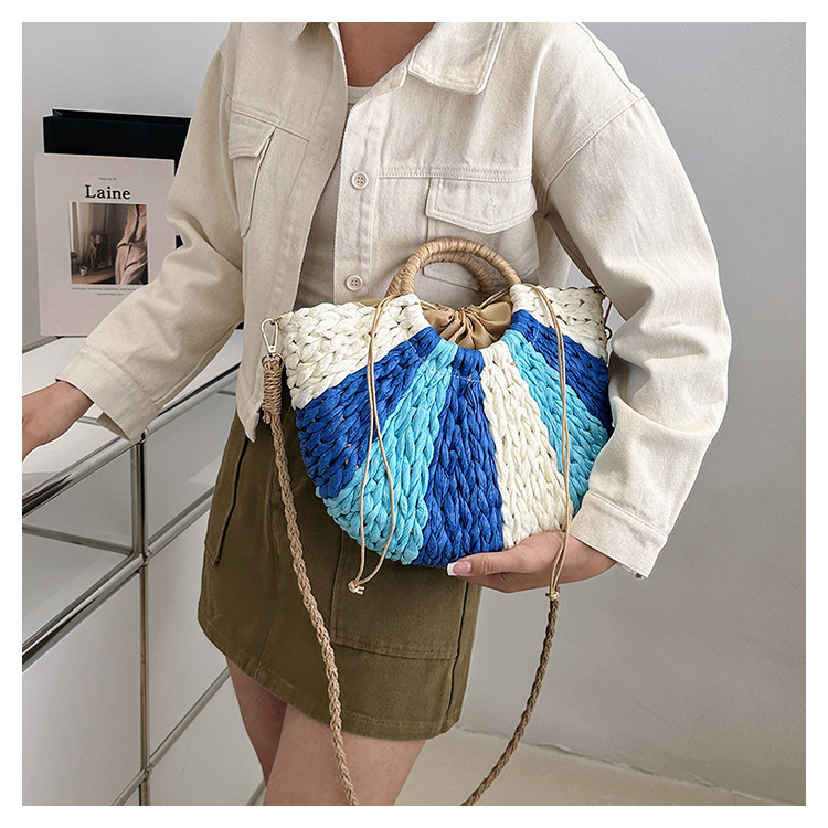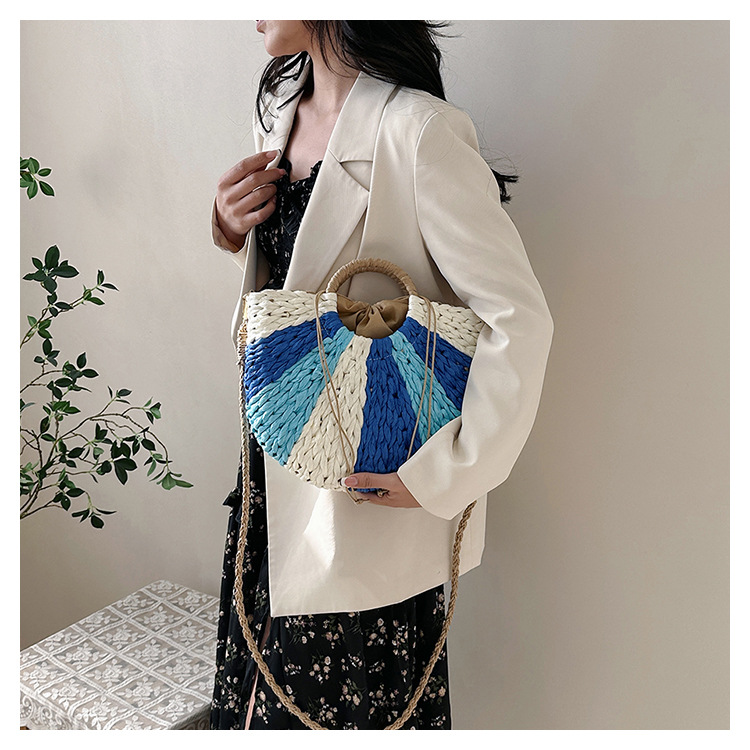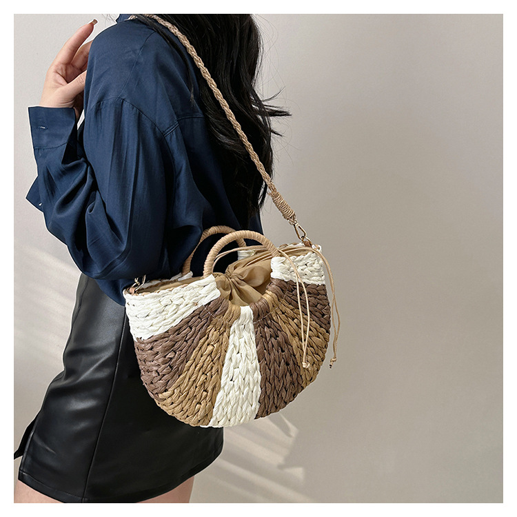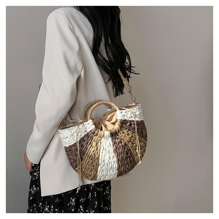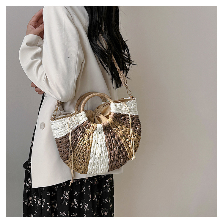 Tengbian Handheld Bag Womens Bag Vacation Travel Beach Bag One Shoulder Crossbody Bag Fashion Handmade Grass Woven Bag