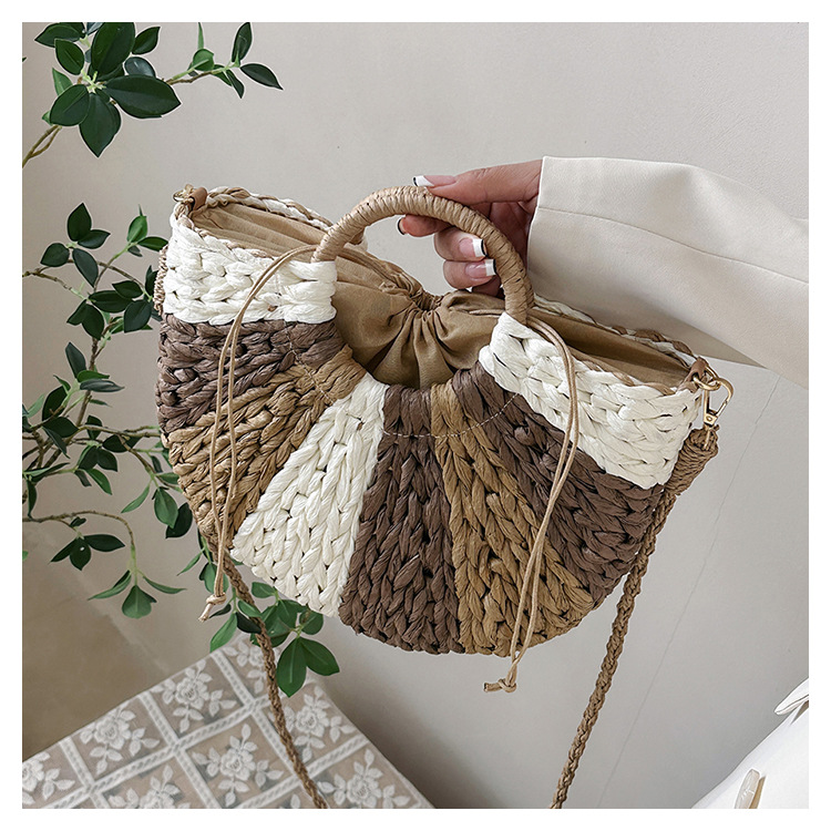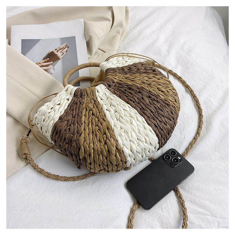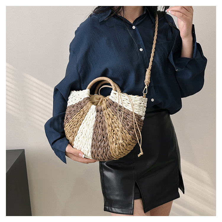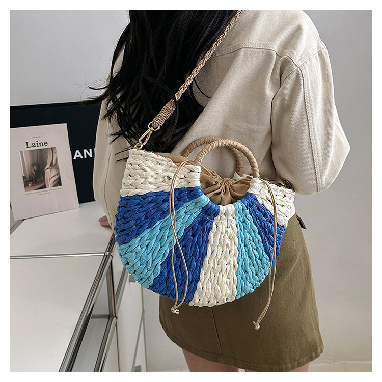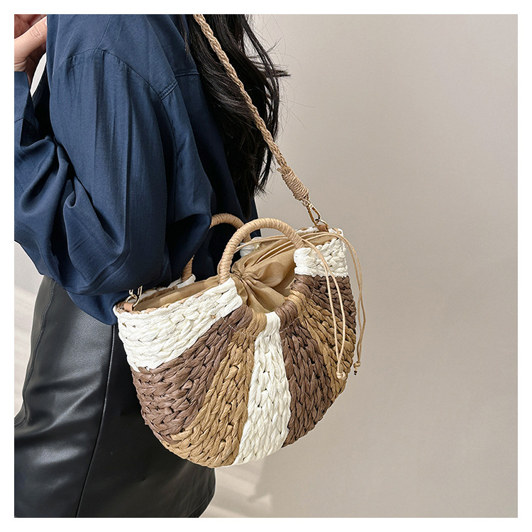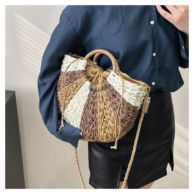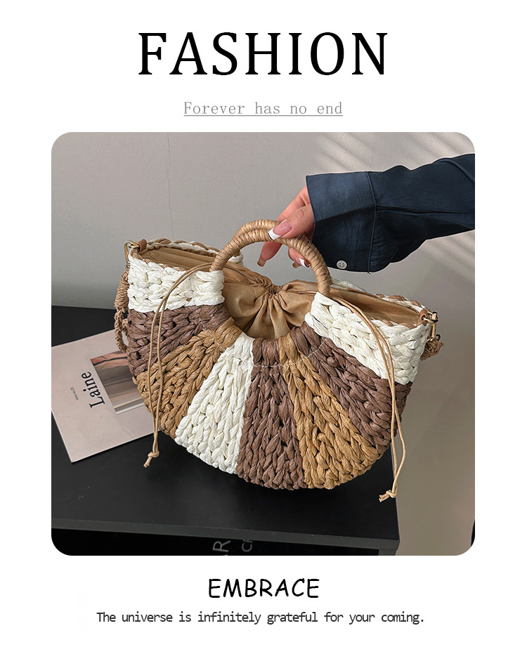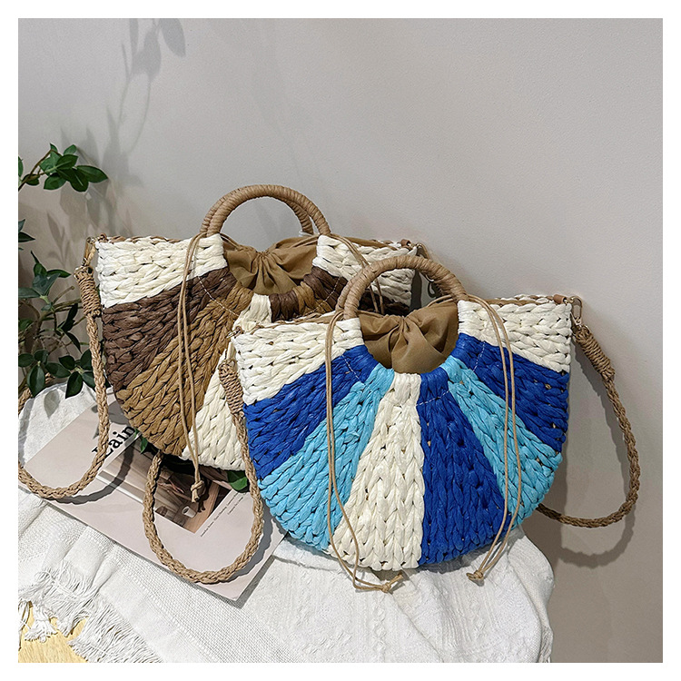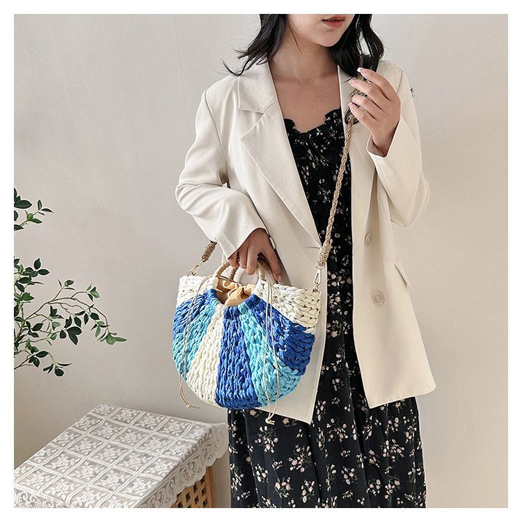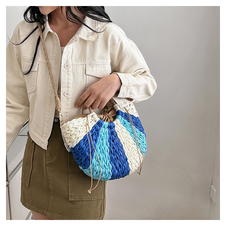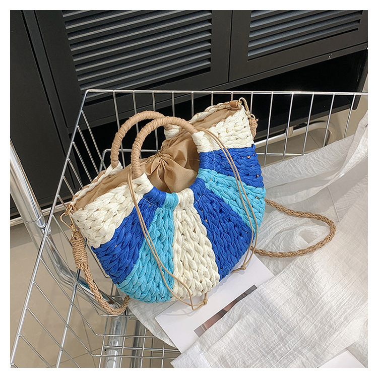Tengbian Handheld Bag Womens Bag Vacation Travel Beach Bag One Shoulder Crossbody Bag Fashion Handmade Grass Woven Bag