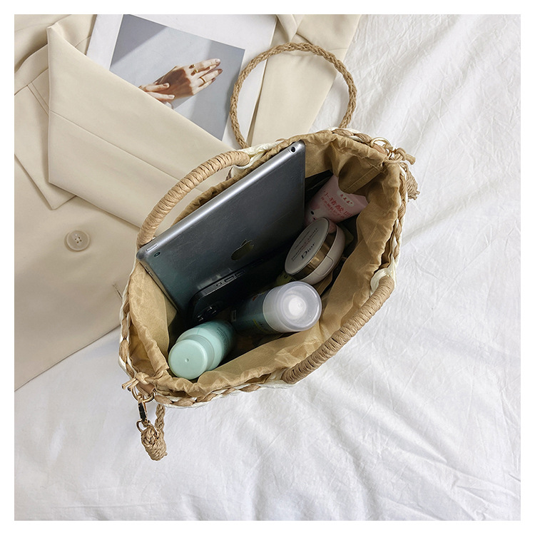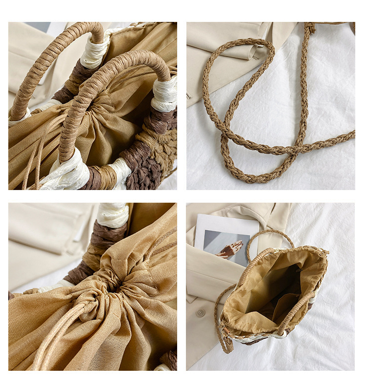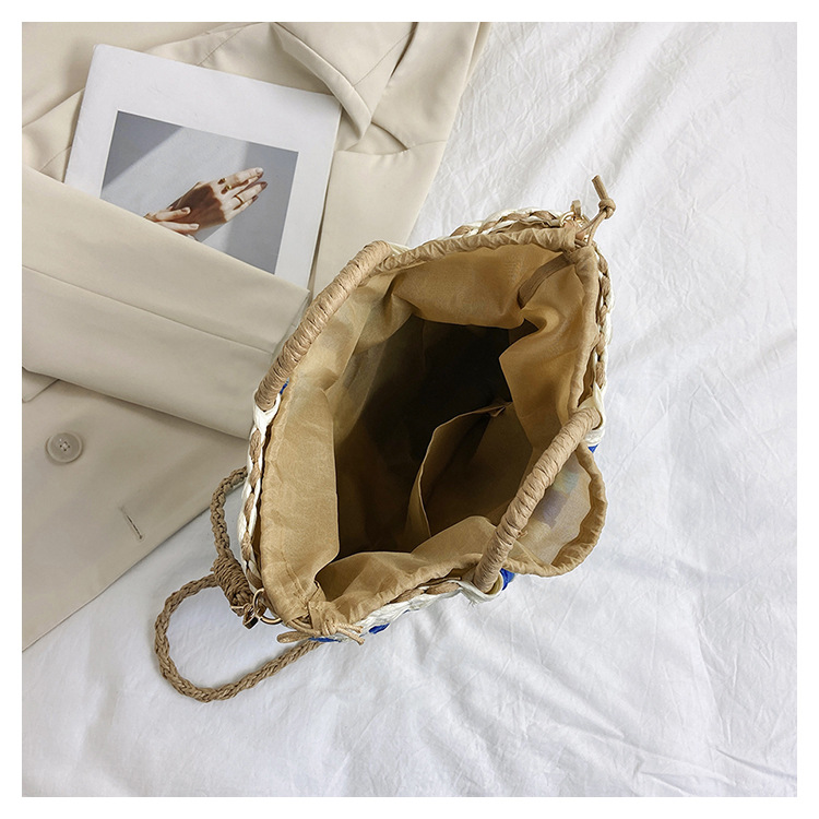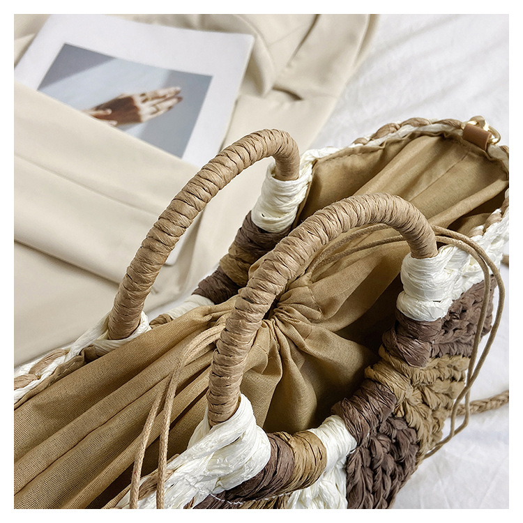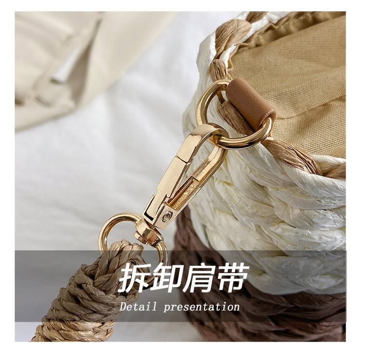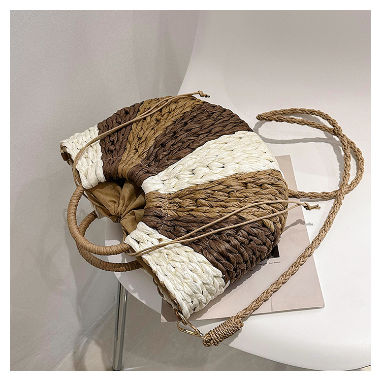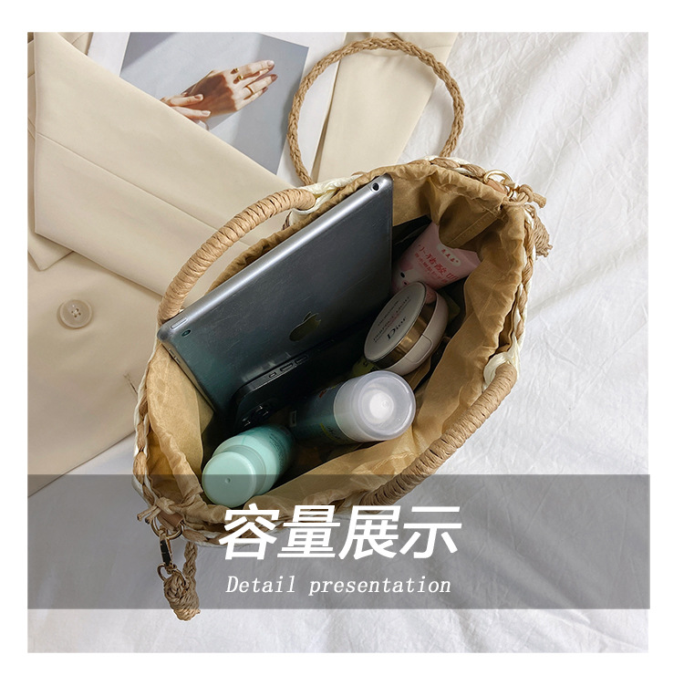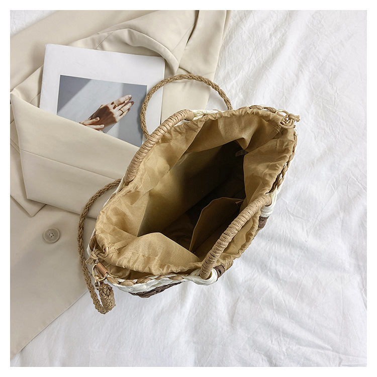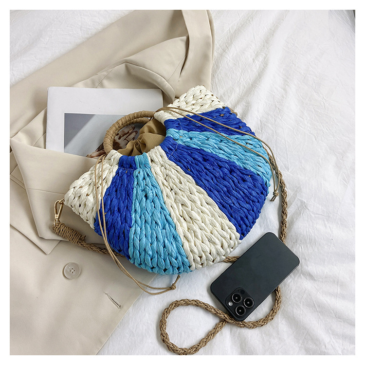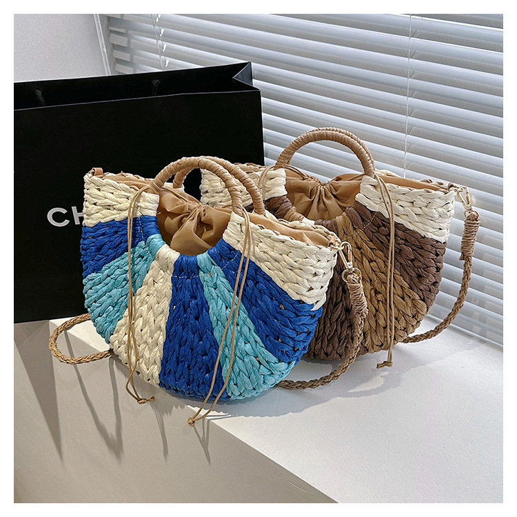 Tengbian Handheld Bag Womens Bag Vacation Travel Beach Bag One Shoulder Crossbody Bag Fashion Handmade Grass Woven Bag