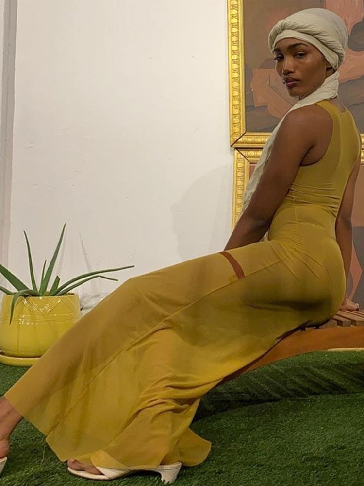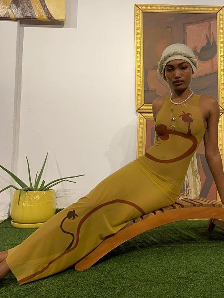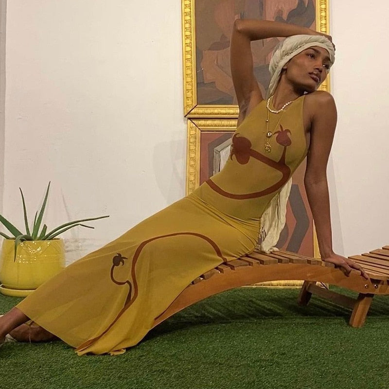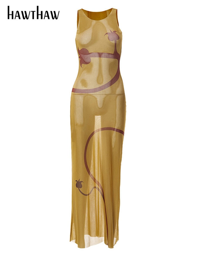 Women Mesh See Through Bodycon Printed Sleeveless Long Dress Summer Clothes Wholesale Items For Business Streetwear